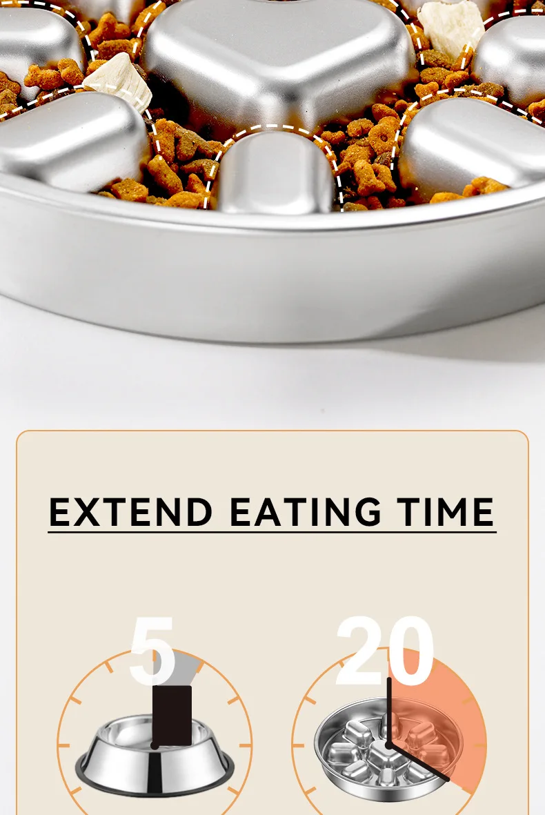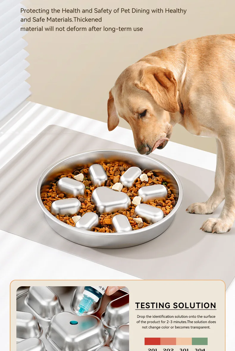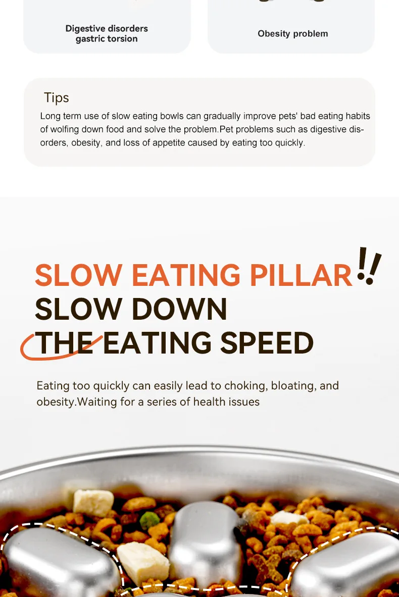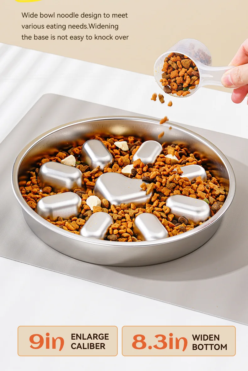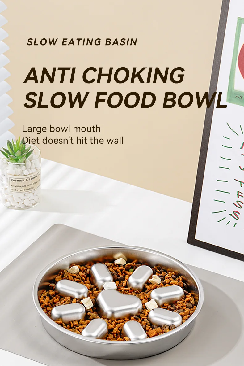 Pet supplies, stainless steel slow food bowl for dogs, feeding basin for cats, anti choking and anti overturning bowl