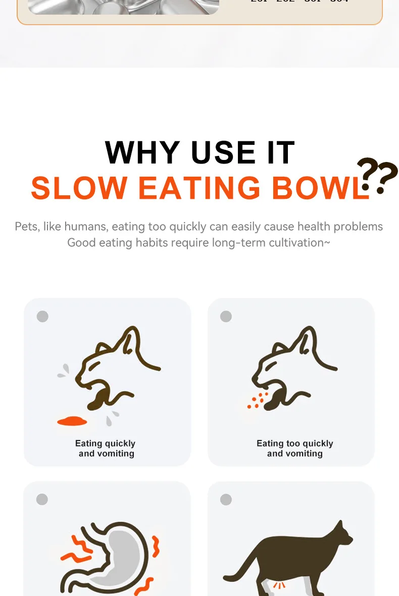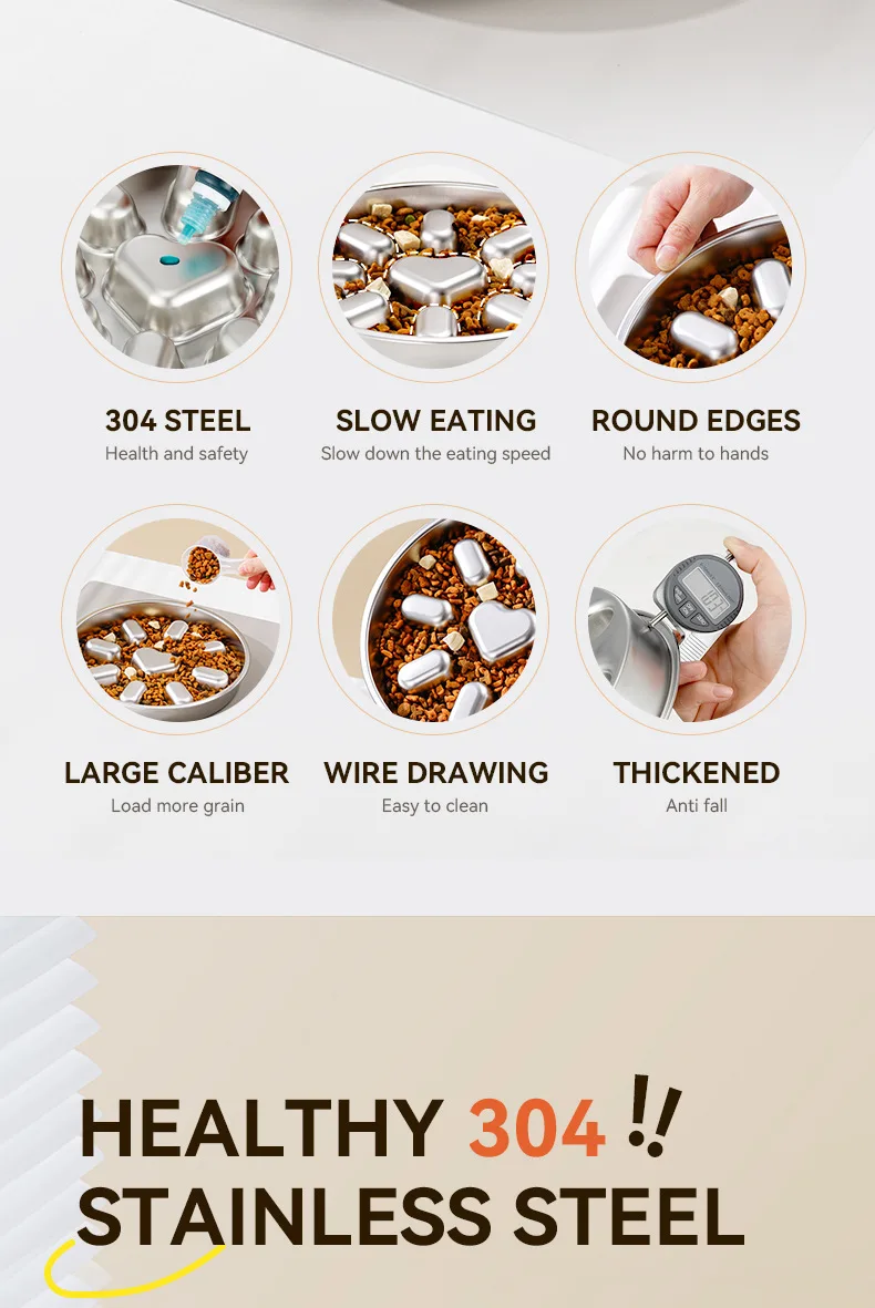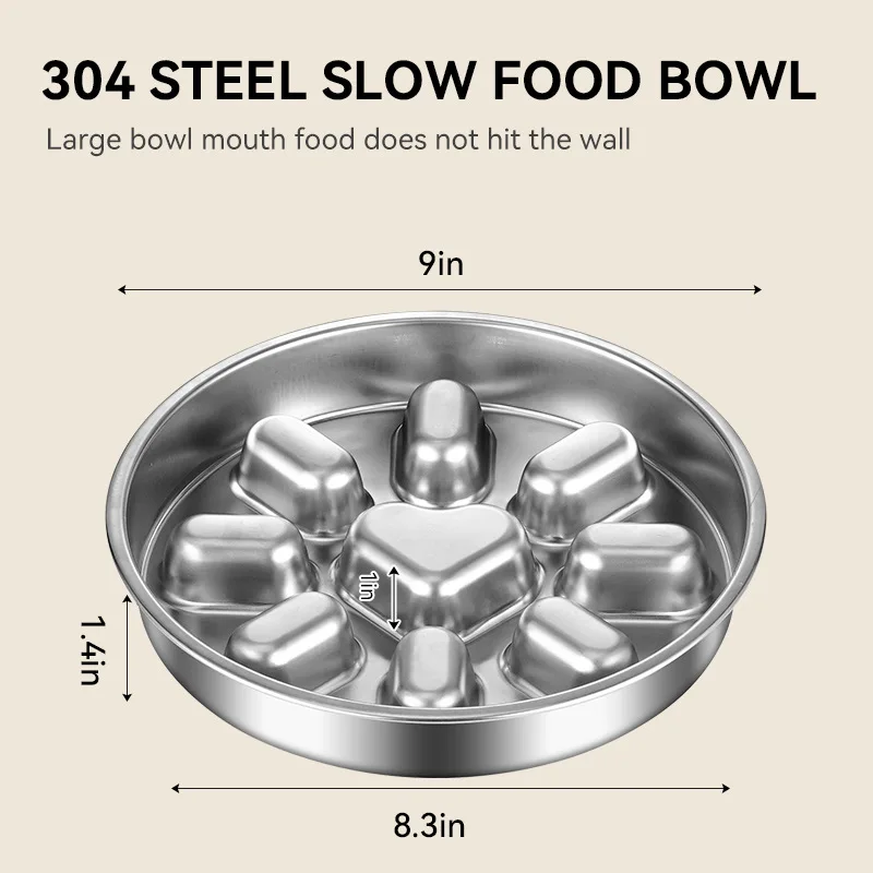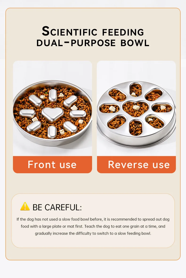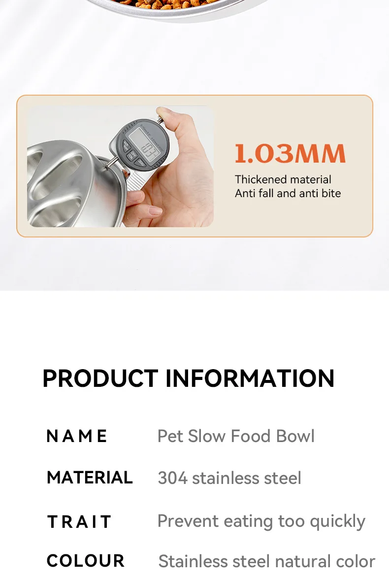 Pet supplies, stainless steel slow food bowl for dogs, feeding basin for cats, anti choking and anti overturning bowl